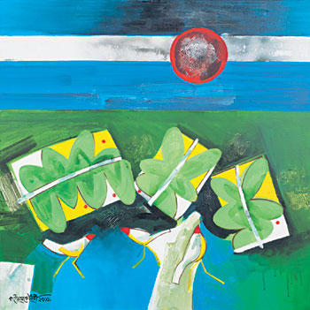 কাইয়ুম চৌধুরী যখন আশি বছরে পদার্পণ করে আমাদের জন্য উপহার দেন চিত্রসম্ভার তখন, সভ্যতার আরেক যে সংকট আমরা প্রত্যক্ষ করি, মনে হতে পারে তার সঙ্গে 888sport live chatীর চিত্রমালার কোনো যোগসূত্র নেই। বাজার-অর্থনীতির প্রচন্ড দাপটে যখন অর্থনৈতিকভাবে কেবল নয়, সাংস্কৃতিকভাবেও তৈরি হতে চলেছে এক পণ্যভোগী আদর্শবিবর্জিত সমরূপ বিশ্ব, প্রতিবাদের অথবা বিকল্পের ক্ষেত্রগুলো খানখান হয়ে পড়েছে, বিশ্বজুড়ে বেড়ে চলছে সংঘাত ও হানাহানি, বৃহৎ শক্তির দাপট সংঘাতের জবরদস্তি সমাধান ঘটাতে গিয়ে পরিস্থিতি করে তুলেছে আরো জটিল, সেই উদ্ধার-সম্ভাবনাহীন পটভূমিকায় কাইয়ুম চৌধুরীর 888sport live chatরূপ কোন কথা আমাদের বলছে? যে-সুন্দরের আবাহন ও জীবনের বন্দনা কাইয়ুম চৌধুরীর চিত্রমালায় মনে হতে পারে তার সঙ্গে সংকটের কোনো সম্পর্ক নেই।