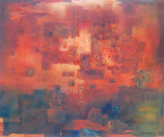 আবু তাহেরকে আমরা অনেককাল ধরে জানি, তিনি অাঁকেন বহুবর্ণিল বিমূর্ত ছবি, যেগুলোকে আমরা নানাবর্ণের কম্পোজিশন ভাবতে পারি। এসব কাজের ভেতরে তিনি ইদানীং কিছু মূর্ততার অনুসন্ধান করেন, কিছু ফিগরের সন্ধান আমরা পেয়ে যাই। তাঁর দুটি চিত্রকর্মের শিরোনাম – ‘দ্য ডার্ক ফর্ম’ ও ‘মাই কান্ট্রি’। একটি কাজে আমরা কালচে মেঘের প্রতিফলন দেখি। এর নিচেই নদীজলের ঢেউ খেলা করছে যেন। অন্য কাজটিতে আমরা লক্ষ করি নানা বর্ণের প্রাবল্য ও ভারী রেখার সাবলীলতা। ছবিগুলো 888sport live chatী এঁকেছেন ক্যানভাসে তেলরং ও মিশ্ররঙে। বেশ কয়েকটি একক প্রদর্শনী করেছেন। এ ছাড়া দেশ-বিদেশে আয়োজিত বহু স্বনামধন্য চারুকলা প্রদর্শনীতে তাঁর অংশগ্রহণ ঘটেছে। 888sport live chatী অনেকদিন ধরে শারীরিক অসুস্থতায় ভুগছেন। আমরা তাঁর সুস্থতা ও দীর্ঘায়ু কামনা করি।