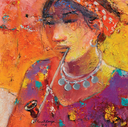 জীবন যেখানে যেমন; অনুভূতির এই দ্বন্দ্বে আমরা শেষ অবধি একটি উপসংহারে পৌঁছি, জীবন যাপনের প্রথাগত ধারণাকে মেনে পথ চলি। 888sport appsের আদিবাসীদের জীবন যাপনের ধরন সমতলে বাস করা সমাজব্যবস্থার চেয়ে ভিন্ন। দৈনন্দিন জীবন যাপনে তারা লালন করেন নিজস্ব সংস্কৃতি। এর প্রতিটি অধ্যায়ে রয়েছে নন্দননির্ভর ঐতিহ্য। কনক চাঁপা চাকমা পার্বত্য অঞ্চলের মানুষের সৌন্দর্যের কথা ছবিতে উপস্থাপন করেন। তাঁর 888sport live chatকর্মে গত তিন দশক ধরে নানাভাবে পার্বত্য চট্টগ্রামের পাহাড়ি জনপদের দিনপঞ্জি নির্মাণ দেখা যায়। 888sport live chatী নিজে পার্বত্য চট্টগ্রামে শৈশব, কৈশোর কাটিয়েছেন। পরবর্তীকালে 888sport app বিশ্ববিদ্যালয়ের চারুকলা ইনস্টিটিউটে (বর্তমানে চারুকলা অনুষদ) 888sport live chatশিক্ষা গ্রহণ করেন। চিত্রকলার পাঠ নিতে গিয়ে তিনি ছবির বিষয়ে হাজির করেন পাহাড়ি জনজীবনের আচার, রীতি-নীতি, পোশাক-পরিচ্ছদ, ব্যবহার্য সামগ্রী। এ প্রদর্শনীর মোট 888sport live chatকর্মের 888sport free bet ৫০। মাধ্যম হিসেবে ব্যবহার করেছেন ক্যানভাসে অ্যাক্রিলিক, তেলরং ও কাগজে চারকোল। কনক চাঁপা চিত্রকলার মৌলিক দিক কম্পোজিশনকে সব ছবিতে গুরুত্ব দিয়ে থাকেন। ফলে তাঁর ক্যানভাস পূর্ণতা পায়, জ্যামিতিক আকৃতির অদৃশ্য বন্ধনে তৈরি হয় শক্তি। তাঁর বিষয়ের প্রতি মনোযোগের সঙ্গে ক্যানভাসে এক কেন্দ্রে গল্পের চরিত্রগুলো হাজির করেন। কেন্দ্রবিন্দুতে রঙের প্রয়োগে ভিন্নতা তৈরি দর্শকদের স্বস্তি দেয়। আদিবাসী জীবনযাত্রার ছন্দ ছবির মাঝে কল্পনার পাহাড়ি প্রকৃতির সঙ্গে মিলে যায়। আদিবাসী সমাজের মানুষ ও জীবনাচরণে সমভূমিতে বাস করা মানুষের আচরণ কিছুটা প্রভাবিত হলেও তাঁদের মৌলিক আচরণে কোনো ব্যত্যয় দেখা যায় না। কনক চাঁপার কাজে জাতি-গোষ্ঠীভেদে যে-পার্থক্য পাওয়া যায় তা স্পষ্ট। রং প্রয়োগের কৌশলে বুনট ও উজ্জ্বলতাকে প্রধান করে নিয়ে বিষয় গড়েন। ইম্প্রেশনিস্ট রীতির চড়া ভারি রঙের প্রলেপের ঢং কনক চাঁপাকে আকৃষ্ট করে আছে গত তিন দশক ধরে। তবে বিষয় বর্ণনে একটি পরম্পরা অনুসরণে তিনি তৎপর থাকেন। কনকের ছবি দেখে এ-প্রশ্নটি বারবার সামনে এসে দাঁড়ায় – একই রকম চিত্রনির্মাণে 888sport live chatীর নিজস্বতার সঙ্গে দর্শকের দৃষ্টির ক্লান্তি আসেনি তো? এমন ধারণাকে পাল্টে দিয়ে আমরা 888sport appsের সমকালীন চিত্রকলার ইতিহাস খুঁজলে স্পষ্ট ধারণা খুঁজে পাব। তাতে 888sport live chatীর স্বকীয়তাকে অত্যন্ত গুরুত্বের সঙ্গে বিবেচনা করা হয়েছে। পাঠক, আমরা সে-আলোচনায় না থেকে বরং কনক চাঁপা চাকমার এবারের ৫০টি কাজকে ভাগ করে নিয়ে বিশ্লেষণে যাই। একেবারে ছোট আকৃতি অর্থাৎ ২৪র্র্ x২৪র্ র্ ক্যানভাস থেকে শুরু করে ১৫র্ x ১০র্ মাপের বড় কাজের মধ্যে ক্যানভাসের জমিন তৈরি করেছেন রঙের প্রলেপে সৃষ্ট বুনটের সাহায্যে। কোনো ক্যানভ