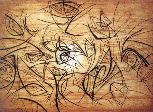 সফিউদ্দীন আহমেদের (১৯২২-২০১২) এচিং মাধ্যমের ছাপচিত্র ‘ক্রন্দন’। বাদামি রঙে ব্যাকগ্রাউন্ড প্রিন্ট করে কালচে রেখায় জ্যামিতিক ফর্মে 888sport live chatী ফুটিয়ে তুলেছেন চোখ, মুখাবয়ব, মাছ আর পাখির ভঙ্গিমা। সবকিছু মিলিয়ে একটি ক্রন্দনের আবহ তৈরি হয়েছে। সফিউদ্দীনের রেখা এমনই দৃঢ় ও সংঘবদ্ধ যে, বিষয় ‘ক্রন্দন’ হলেও এর আবহ ও পরিবেশনা ভালো লাগে; দৃষ্টি নিবদ্ধ হয় গঠনের সৌন্দর্যের দিকে। প্রদর্শিত চিত্রকর্মটি 888sport live chatীর ১৯৮০ সালের রচনা।