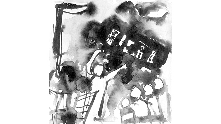 তখনি বাসটা একটা ঝাঁকুনি লাগিয়ে তার সামনেই এসে যেন হুমড়ি খেয়ে থমকে পড়ে। লোকটাও থমকে দাঁড়ায়। বাসের ভেতরে তখন হচ্ছে ধস্তাধস্তি আর হল্লা। থামবার কোনো লক্ষণ নেই। বাস থেকে কেউ নামেও না। কারো নামবার কোনো লক্ষণও নেই। লোকটা বাসটাকে নিরীক্ষণ করে, পাদানিতে বাদুড়ঝোলা যাত্রীদের দিকে একবার তাকায়। তারপর হাতের মেশওয়াকটা ছুড়ে ফেলে দিয়ে, এক পা এগিয়ে যায়। হঠাৎ সে জামা ধরে বাদুড়ঝোলা একজন যাত্রীকে টেনে নামিয়ে একটা প্রচণ্ড ঘুষি মেরে মাটিতে ফেলে দেয়। এমনি করে সে পর পর কয়েকজন বাদুড়ঝোলা যাত্রীকে নামিয়ে ধরাশায়ী করে ফেলে। দেখতে-না-দেখতে পাদানি খালি হয়ে যায়। এ-দিকে বাসের ভেতরের ধস্তাধস্তি আর হল্লা থেমে যায়। হেলপারও ফিরে আসে। তবে তার চোখ বিস্ময়ে বিমূঢ় এবং গোল গোল। কেউ কিছু বলবার সুযোগ পাবার আগেই, লোকটা নিজের দুহাতে দুহাত ঝেড়ে ফেলে। গামছাটা গুছিয়ে এ-কাঁধ থেকে ও-কাঁধে রাখে। তারপর অকুস্থল থেকে হেলে-দুলে হাঁটতে হাঁটতে পলাশী ব্যারাকের দিকে চলে যেতে থাকে। একবারও ফিরে তাকায় না।